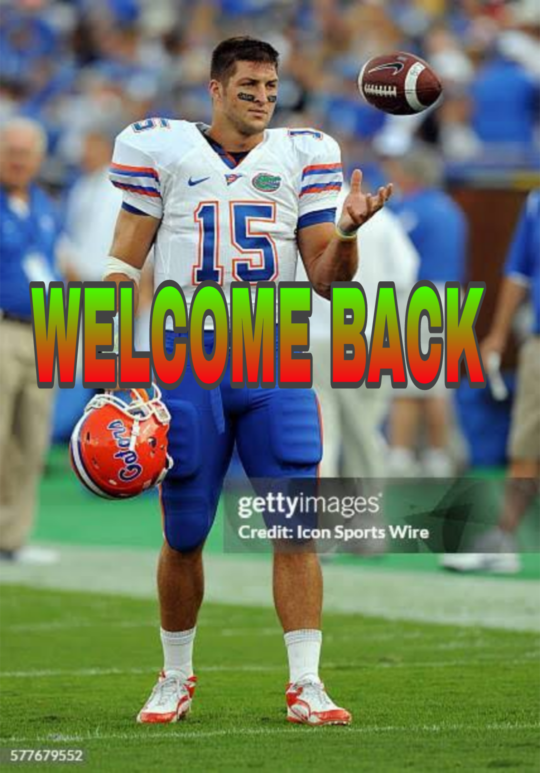“Once a Gator, always a Gator,” Tebow said with a smile, waving to the roaring crowd.