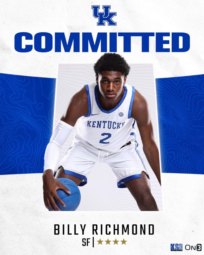The Kentucky Wildcats have landed another recruiting win, as four-star guard Billy Richmond has officially committed to join John Calipari’s program in the 2025 recruiting class. Richmond’s decision gives Kentucky a significant boost heading into the future, adding a player with versatility, athleticism, and a strong basketball pedigree to a class already brimming with promise.